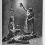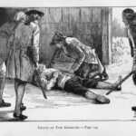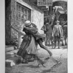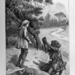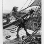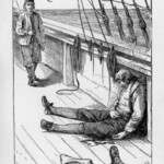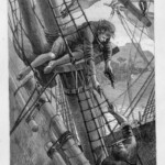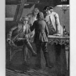 The “French pictures” referred to here are Roux’s. He was clearly content with this illustrative treatment, on which he placed great importance; in 1887, Roberts Brothers threatened to publish another illustrated version with “disgusting” illustrations, and Stevenson wrote in desperation to Charles Scribner to obtain Roux’s illustrations from Cassell and Company. However, he qualifies his praise of Roux by adding that “the French faces jar”. In the end, the next American illustrated edition was published in 1902 by Scribners with illustrations by Walter Paget.[7] Appropriate illustrative interpretation was important to Stevenson. This catalogue therefore represents a set of illustrations that the author himself found to be appropriate, albeit with misgivings, and should be viewed in this light.